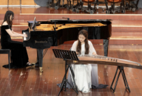 04-184月11日晚,上海师范大学“上海之春”艺术展示周“艺启新征程”系列演出之“筝途新语”何占豪古筝重奏作品音乐会在学校音乐厅精彩上演。本场演出玉兰筝团携手12支古筝团队联袂献演,著名作曲家何占豪亲临现场,老中青少四代筝人同台,共呈艺术深度与美育温度兼具的15首不同风格作品,音乐学院副教授、民乐系主任宋小璐担任导聆。