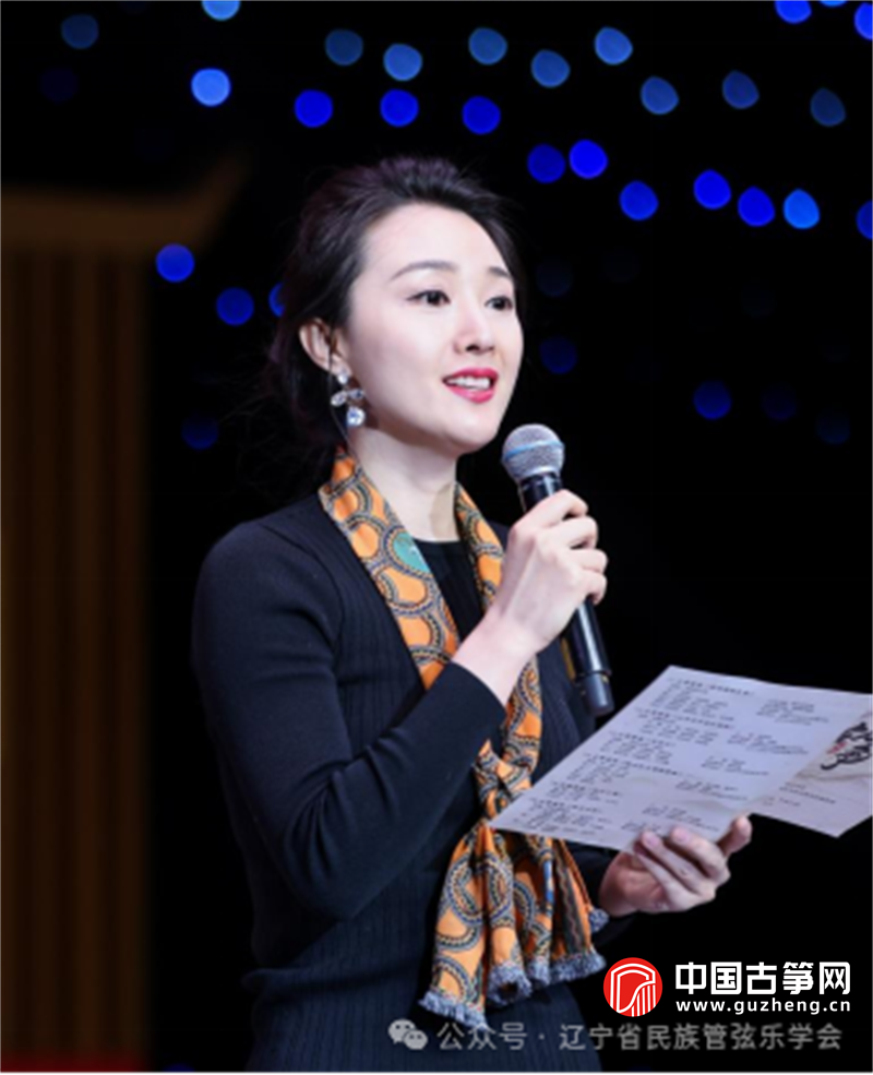 随后,辽宁省民族管弦乐学会张青玫秘书长介绍道,学会自1996年成立以来,在老一辈艺术家的无私奉献与全体会员的共同耕耘下,已汇聚近千名艺术家和音乐爱好者,下设11个专业委员会,古筝专业委员会便是其中核心力量。多年来,古筝专业委员会秉持“在传承中创新,在坚守中发展”的理念,在学术研究、演出实践、公益推广等领域深耕不辍。本次音乐会以“发掘优秀人才、弘扬古筝艺术”为使命,搭建起汇聚智慧、传承经典、开拓未来的专业交流平台,通过深耕教学传承、打磨艺术创作、拓展交流渠道,让古筝这门古老艺术在新时代焕发鲜活生命力。张青玫秘书长表示,愿与各界携手同行,加强交流共享,为青年人才搭建成长阶梯,让古筝之音跨山海、响彻中华。最后,她预祝本次音乐会圆满成功。