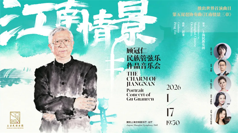 本场音乐会将演出顾冠仁先生江南主题音乐作品,最新创作的第五琵琶协奏曲《江南情景三章》也将迎来首演,带领观众一同走进江南风韵与时代新声交织的音乐世界。