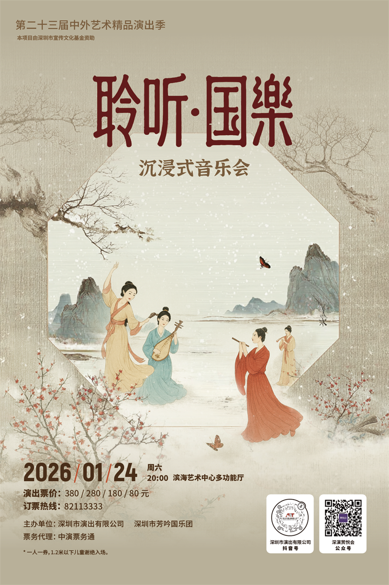 深圳市芳吟国乐团成立于2000年,由著名古筝演奏家沙里晶领衔掌舵。乐团成员均接受系统专业的音乐教育,深耕古筝、琵琶、中阮、埙、箜篌等国乐领域,功底深厚。