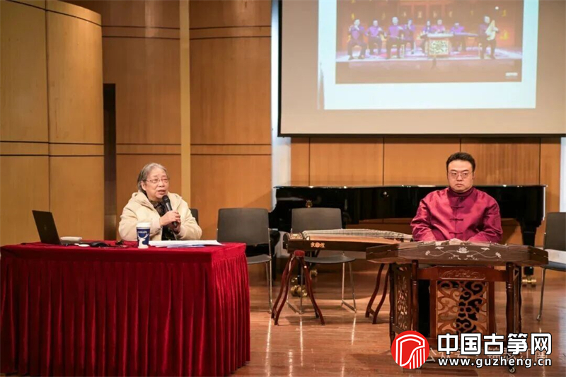 讲座环节,何小栋老师为我们勾勒出上海国乐研究会在时代变迁中的发展脉络。1941年,孙裕德先生联合一批志同道合的音乐爱好者组建了国乐研究会,为复兴民族音乐奔走呼号。1941年4月8日在兰心大戏院的首场公演,《怀古》《佛上殿》《汉宫秋月》等经典曲目轮番上演,彰显了国乐研究会在江南丝竹文曲领域的深厚造诣。1947年,孙裕德先生领衔8名成员加入中国文化剧团赴美巡演,接连举办60余场演出,旧金山媒体盛赞他们为“中国的音乐大使”。