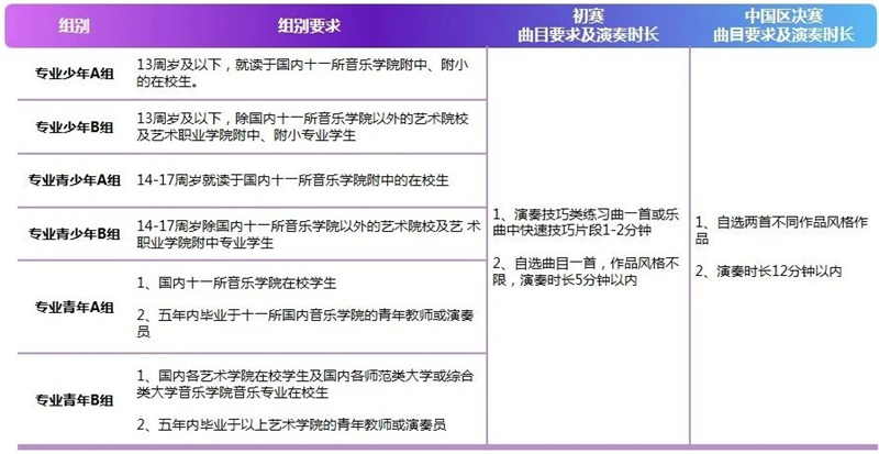 ※ 注:可以带伴奏,仅限现场演奏的伴奏,不可用任何形式的伴奏带。