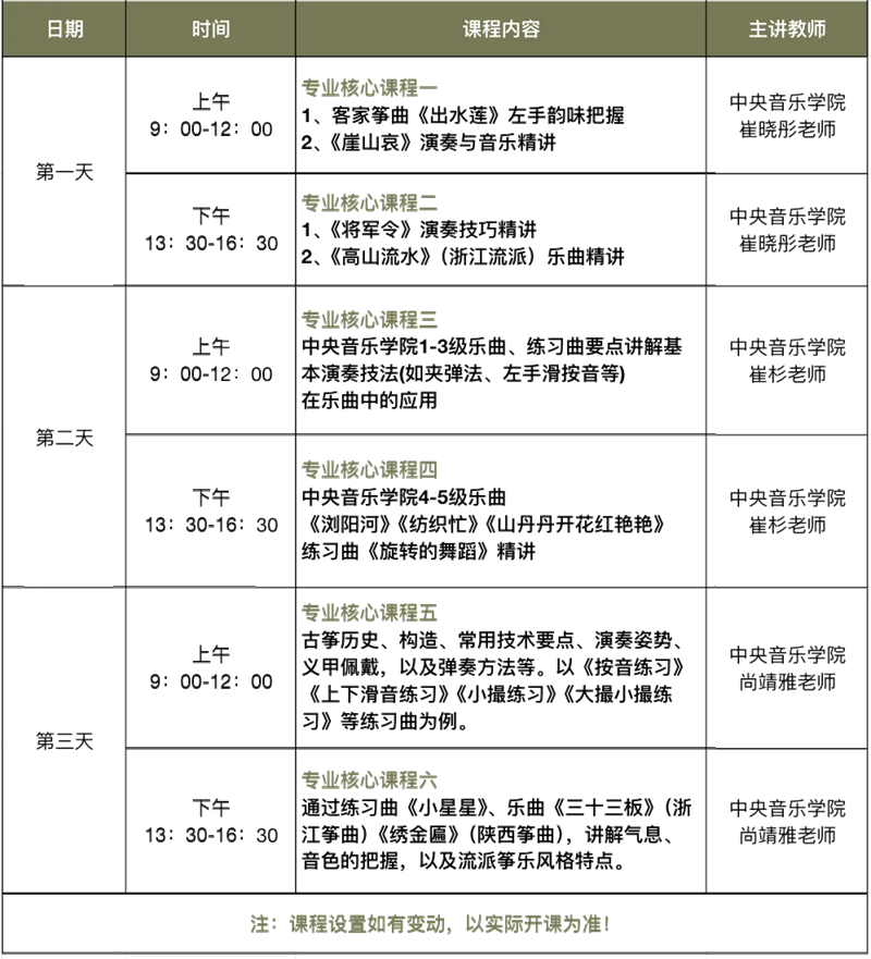 标准级:具备相当于《洞庭新歌》、《山丹丹开花红艳艳》等作品的演奏程度以及具有古筝教学经验的从教人员。