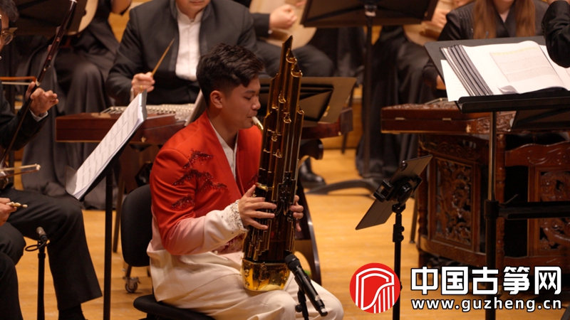 紧随其后梁景然的一曲《翠·簧》,将观众的听觉焦点转向笙这一古老的乐器。该曲由何谐、梁景然创作,在色彩、形态与气韵的递进中,拓展了笙在协奏语境中的表现可能。梁景然是国乐系本科四年级学生、全国青少年民族器乐教育教学成果展演优秀演奏奖获得者、中国音协“艺苑撷英”青年表演人才。他的演奏在气息、音准和音色转换上把握精准,与乐队成自然呼应,展现出扎实的专业训练基础和出色的舞台控制能力。