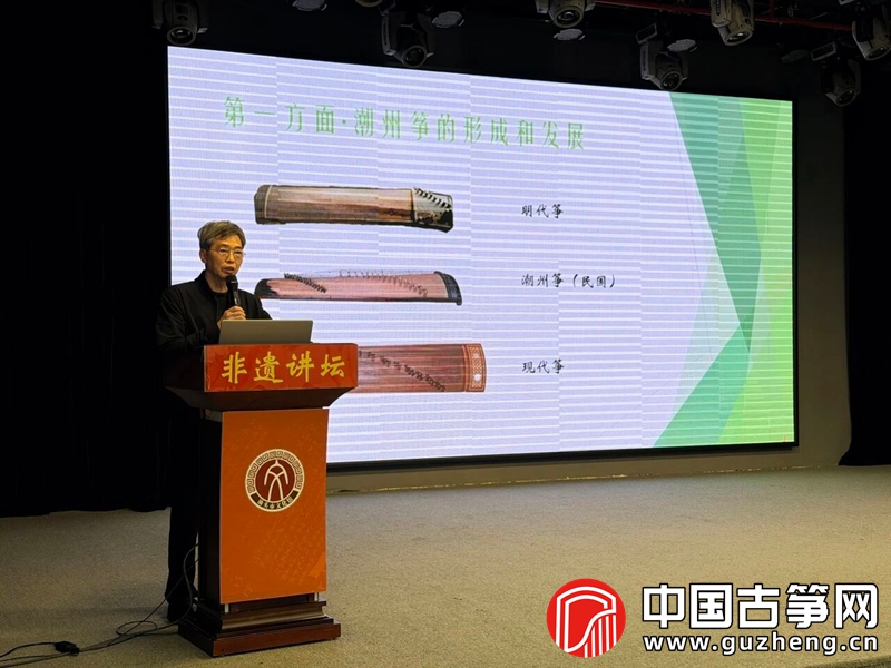 寒鸦嬉水里,花指抚荡漾。汕头市文化馆2026年第一期非遗讲坛,邀请到省级非遗项目潮州音乐市级代表性传承人陈其俊老师带来一场别开生面的潮州筝艺术赏析。陈老师从潮州筝的形成和发展、风格特点、技法及演绎方式等方面,对其进行全面而深入的讲解。
