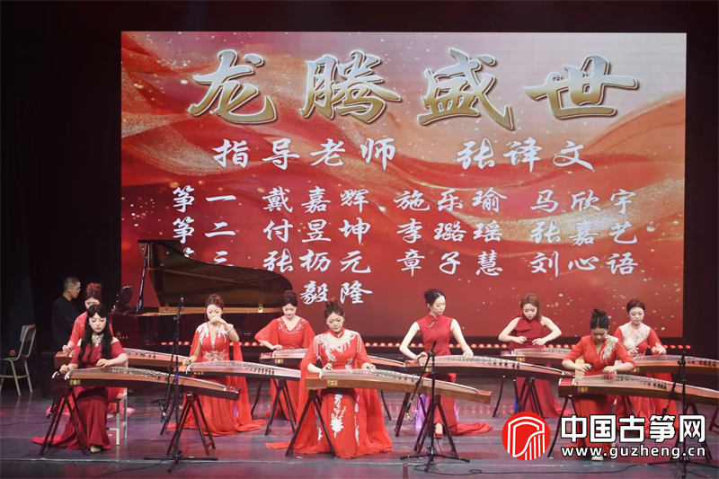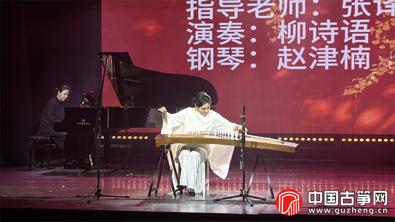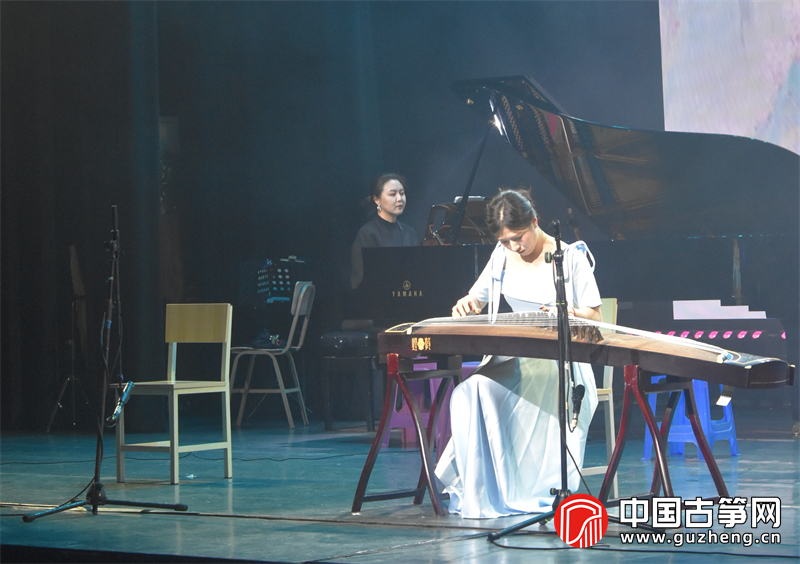 音乐会以气势恢宏的《龙腾盛世》拉开序幕。筝一、筝二、筝三声部与钢琴默契配合,戴嘉辉、付昱坤、张枥元等九位演奏者以饱满的情绪勾勒出盛世欢腾之景。随后的《苍歌引》由黎若涵独奏,赵津楠钢琴伴奏,苍茫而富有张力的旋律引领观众进入天地初开的意境。《末代传奇》由柳诗语演绎,钢琴与古筝交织出历史沧桑感。