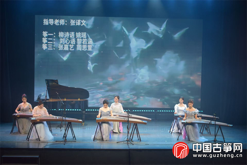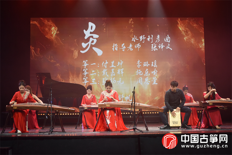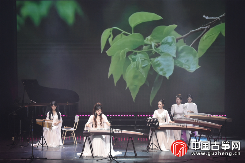 一首《炎》将音乐会推向第一个高潮。付昱坤、李璐瑶、戴嘉辉、施乐瑜、张枥元、周思萱等分任三个筝声部,吕舒帆以打击乐助奏,炽烈的节奏与多声部对话展现了重奏训练的扎实功底。《蝶》则由柳诗语、姚瑶、刘心语、黎若涵、张嘉艺、周思萱等分三声部呈现,灵动轻盈的旋律如蝶群翩跹。