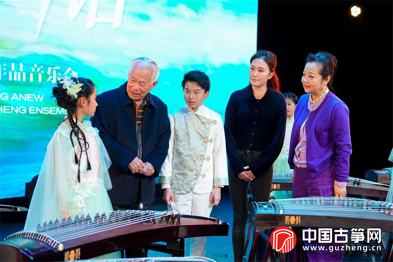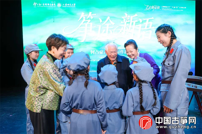 音乐会在经久不息的掌声中落幕。15首佳作、12支团队、近百名演奏者,共同呈现了一场跨越年代、融合多元风格的视听盛宴。演出结束后,何占豪与演职人员亲切交流,高度评价音乐会的艺术水准与教育意义。他表示,为青少年创作古筝重奏作品,初衷是降低演奏门槛,让孩子在合奏中感受民乐魅力,理解其文化内涵与精神力量。