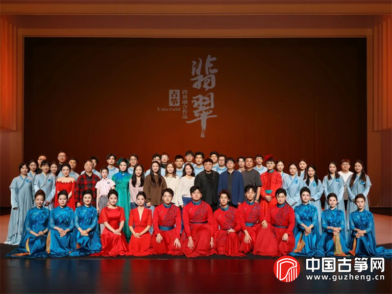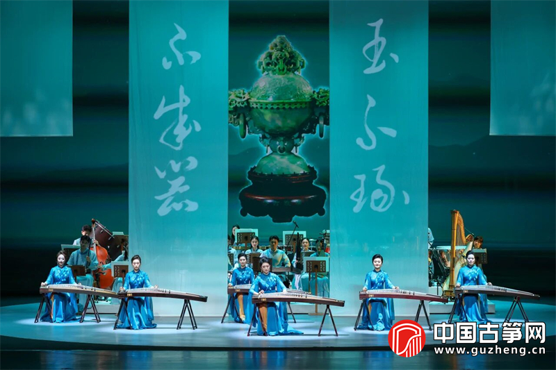 在《翡》篇章中,古筝与激昂鼓声交织,勾勒雄鸟昂扬的阳刚之气,再现先民古朴壮阔的生活场景;《翠》中,古筝与竖琴、乐团相融,奏响温婉清丽旋律,尽显阴柔之美;《相濡》以双筝对话搭配双人舞,在丝竹弦音中诉说温情;《琢器》《塑魂》篇章,多筝合奏与室内乐团协奏气势恢宏,将玉石雕琢、民族铸魂的精神内核展现得淋漓尽致;最终篇章《千秋》,群筝与乐团齐鸣,旋律恢弘壮阔,传递出中华文脉薪火相传、生生不息的深厚情怀,呈现出玉之温润、石之坚韧、水之灵动、光之璀璨的多维意境。