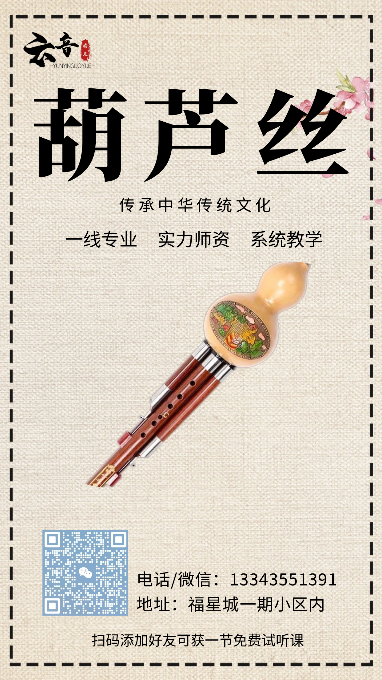 云音国乐专注民族乐器培训、乐器销售,开设古筝、古琴、竹笛、洞箫、葫芦丝等课程,湖北恩施学院音乐系专业老师授课。