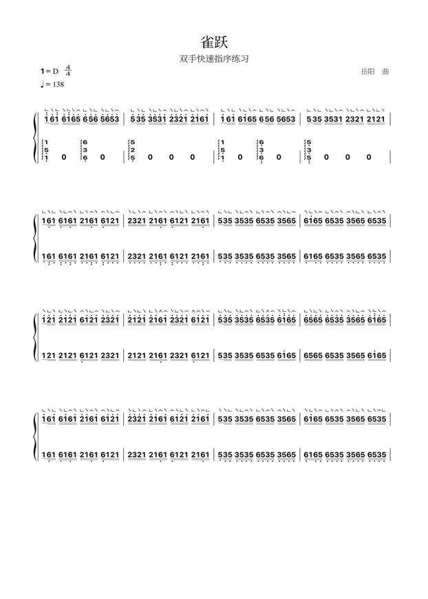查看《双手快速指序练习《雀跃》(简谱)》钢琴版